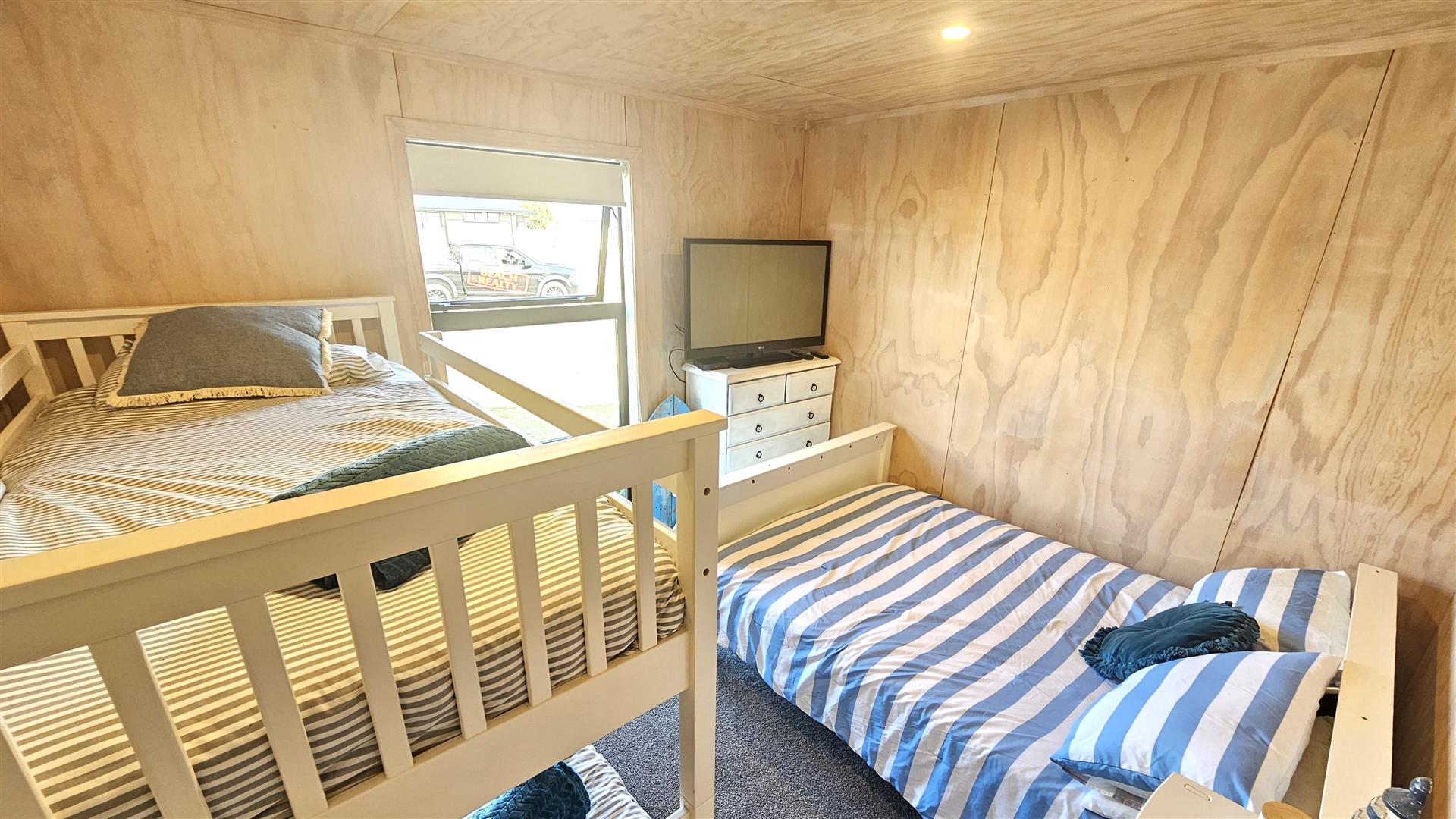 This timeless classic was originally built as a 2 bedroom holiday home featuring polished concrete floors with blonded plywood interior walls, bound in a black exterior. This hugely popular combo sets the trend for a great holiday escape. The true benefit is that most of the extended living is on the north side under the cover of a full width portico, the large slide blends inside and outside seamlessly. In addition there is a luxurious single roomed cabin, perfect for guests to stay. The property is adjacent to a walkway reserve, been fully fenced and secure for young ones and pets and has plenty of off road parking. Make Matarangi that great escape you've been meaning to do call Mark and Shirvani to book an appointment.